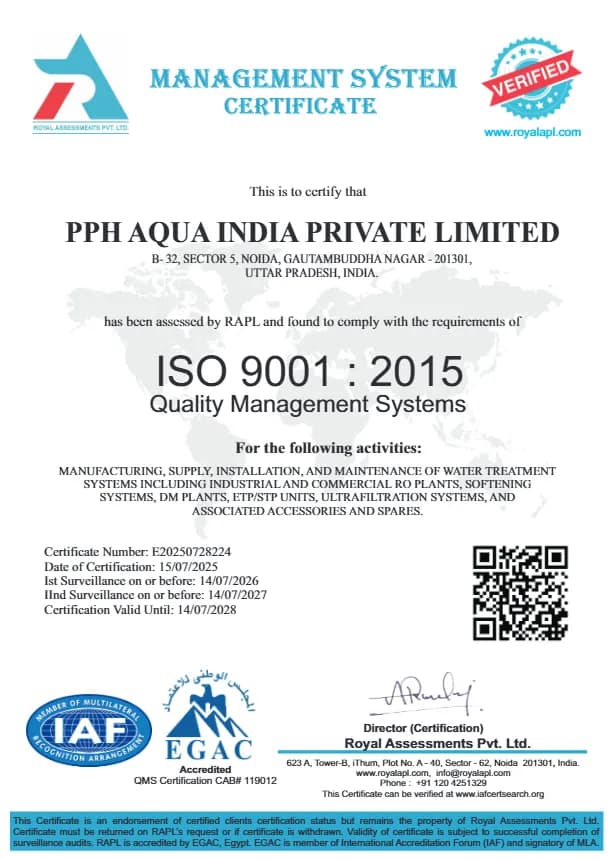 Founded with a mission to create a sustainable future, PPH Aqua consistently focuses on delivering innovation, quality, and customer satisfaction. As an ISO 9001:2015 certified company, we adhere to strict quality standards and provide reliable and cost-effective solutions across India.